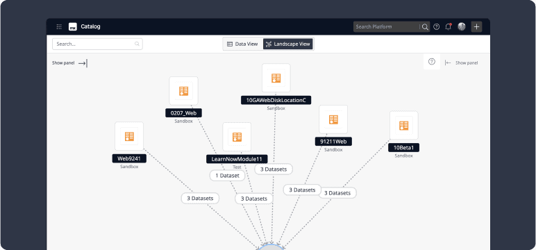 Though not a centralized data store (i.e. EDW or Data Lake), it is the central hub in an organization for finding metadata and connecting applications and BI tools to the relevant shared datasets. It also ensures consistency in the data used throughout the organization.