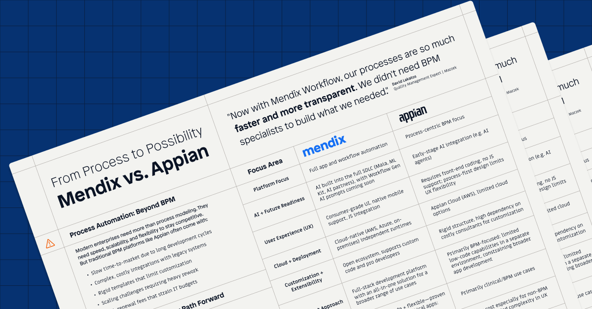 While other vendors provide one piece of the puzzle, Mendix is a full-stack, flexible platform built for the complexities of workflow automation and custom application development.