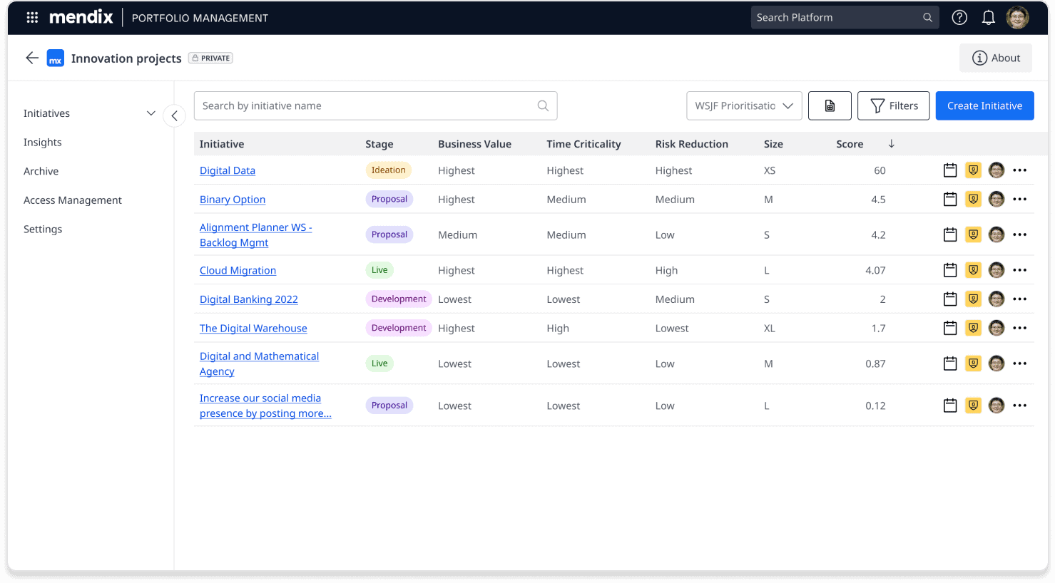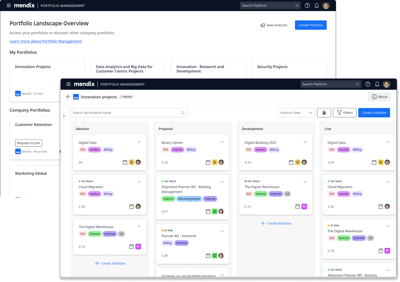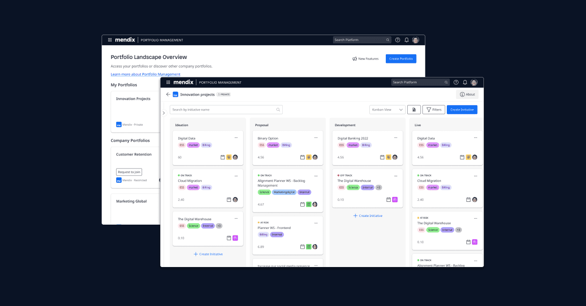 Built into our industry-leading platform, Mendix Portfolio Management centralizes your digital initiatives so you can prioritize with confidence.