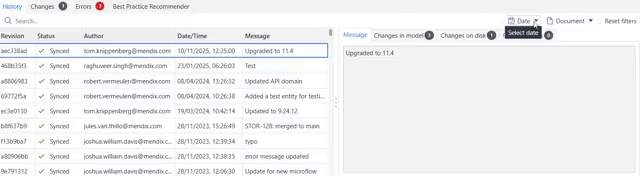 Remember the public beta for the non-blocking, searchable history pane which we announced last month? With the 11.5 release, we’ve added a date filter to quickly find the commits you’re looking for, in addition to the document filter and free-text search.