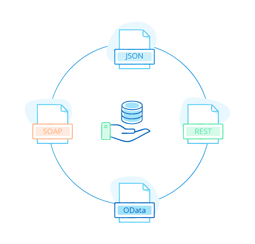 Mendix supports connections to other apps and services through industry-standard interfaces and protocols such as REST, SOAP, JDBC, and OData. The platform offers many solutions for ensuring that new applications can both consume and expose data and services in heterogeneous environments.