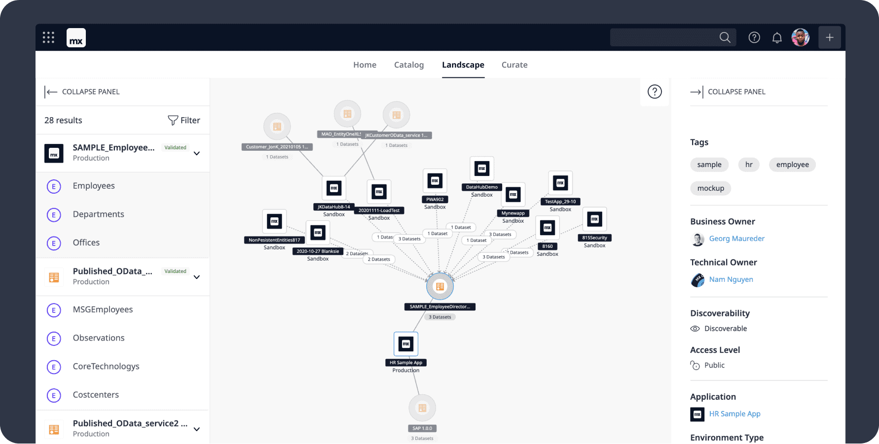 Locate metadata, connect applications and BI tools to the right datasets, and ensure data consistency throughout your organization. In the Mendix Connect Catalog, teams can describe data sources, assign business and technical ownership, and tag data sources appropriately.