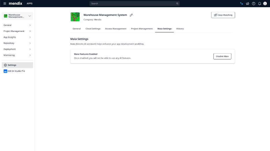 We’re introducing a new setting within the Project Settings to give you more control over AI providing help in your projects. You can now opt out of using AI in Epics and App Insights, directly through Maia settings. This update provides greater flexibility, allowing you to customize where and when AI assistance is applied to your work.